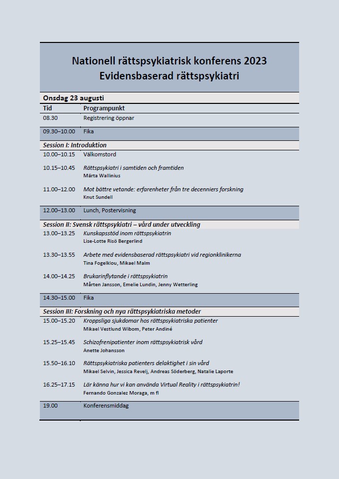 Tema: Evidensbaserade rättspsykiatriska vårdprocesser