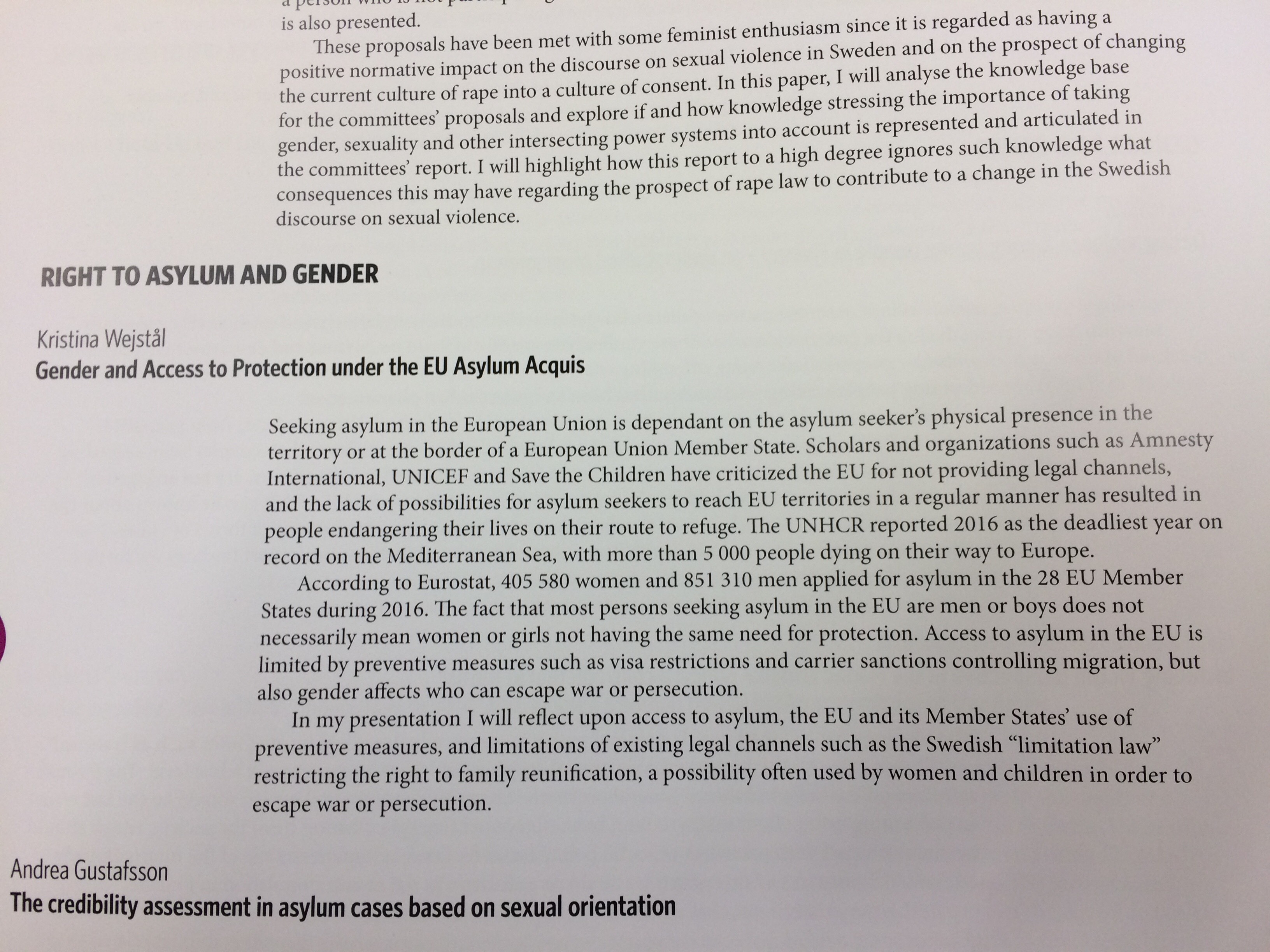 Breadcrumb Home News and events Find news Kristina Wejstål at Conference in Finland Kristina Wejstål at Conference in Finland Published 15 May 2017 at Centre for European Research at the University of Gothenburg CERGU PhD candidate Kristina Wejstål has been participating in a conference in Åbo, Finland. Kristina presented at the Nordic Law and Gender Conference with her paper entitled, "Gender and Access to Asylum under the EU Asylum Acquis."