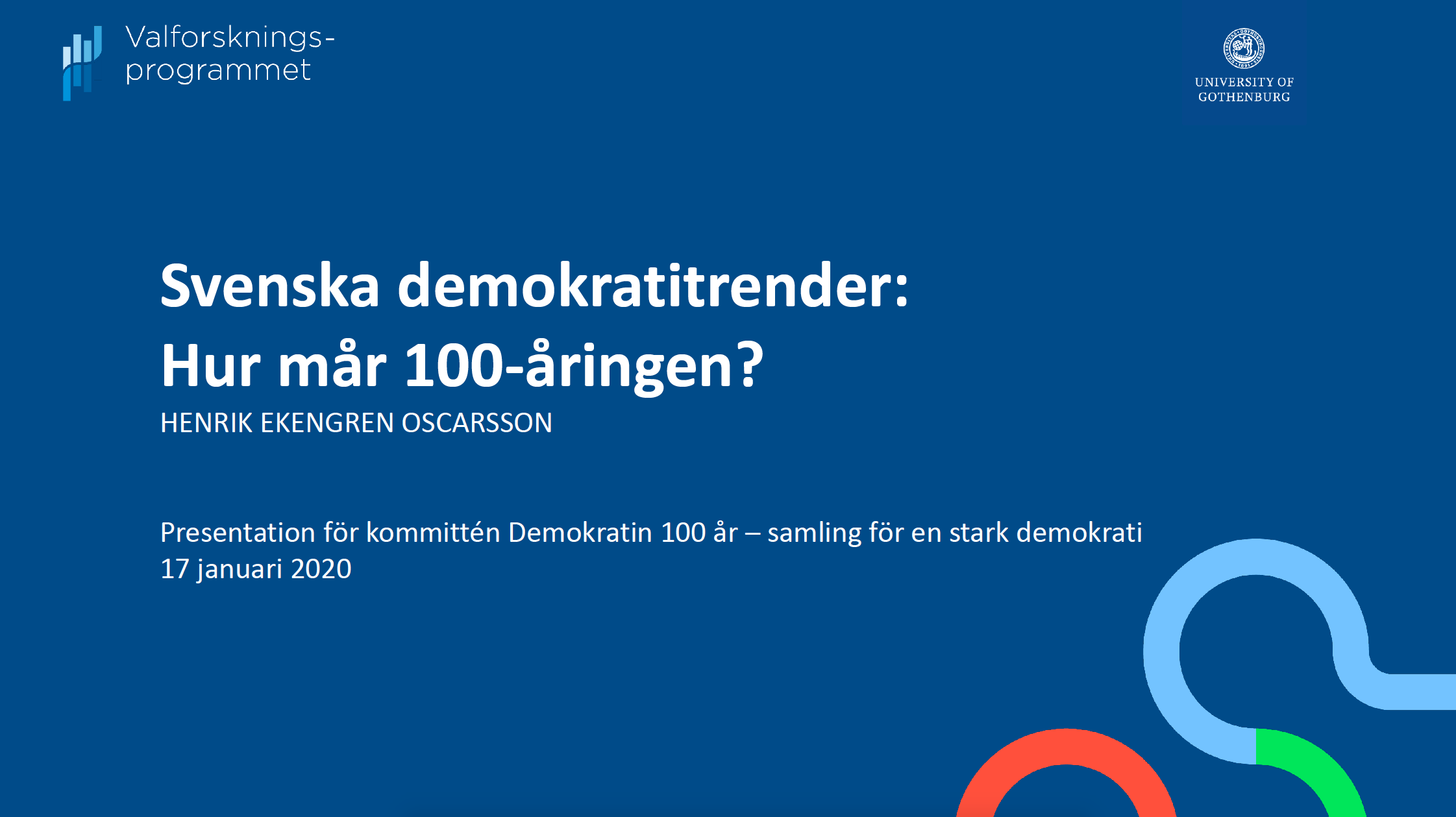 Affiliated researchers are often presenting results at meetings, conferences, seminars, and other events. Most presentations are in Swedish and are available on our Swedish webpage. Please contact us if you have any questions regarding the content or if you want to invite a researcher to present research results.