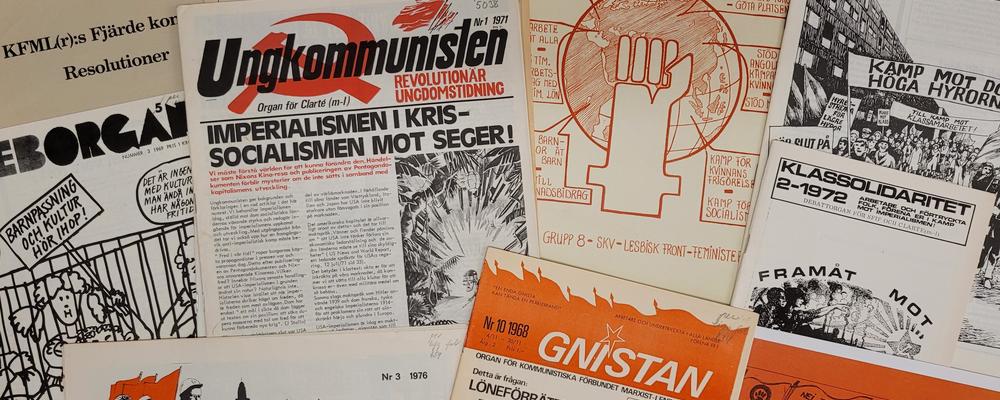 Utställningen lyfter bland annat fram protokoll, foton, banderoller, knappar och korrespondens.