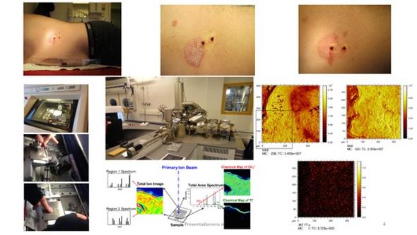 Time-Of-Flight Sekundärjons-masspektrometri (TOF-SIMS) är en avbildande teknik som kan identifiera grundämnen och organiska molekyler. I pilotstudier har vi påvisat en ny unik applikation av metoden som gör det möjligt att studera fördelning och kvantifiering av lipider, D-vitamin och dess metaboliter i huden. TOF-SIMS blir därför ett värdefullt verktyg i våra delprojekt.