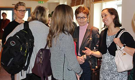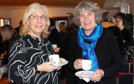 Lena Hansson, forskare vid Centrum för Konsumtionsforskning i Göteborg med en av föreläsarna, Karin Salomonsson vid Lunds universitet, som presenterade sitt kapitel under eftermiddagen.