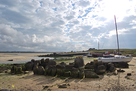 Megalitgraven L’Estran de Kernic på Bretagnes nordkust. Havsnivån har stigit sedan yngre stenåldern och graven är bara synlig när det är ebb.