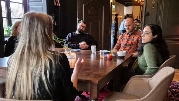 Forskarskolans kick-off gav flera tillfällen till diskussioner och erfarenhetsutbyten, här under kaffepaus i Ågrenska villan.