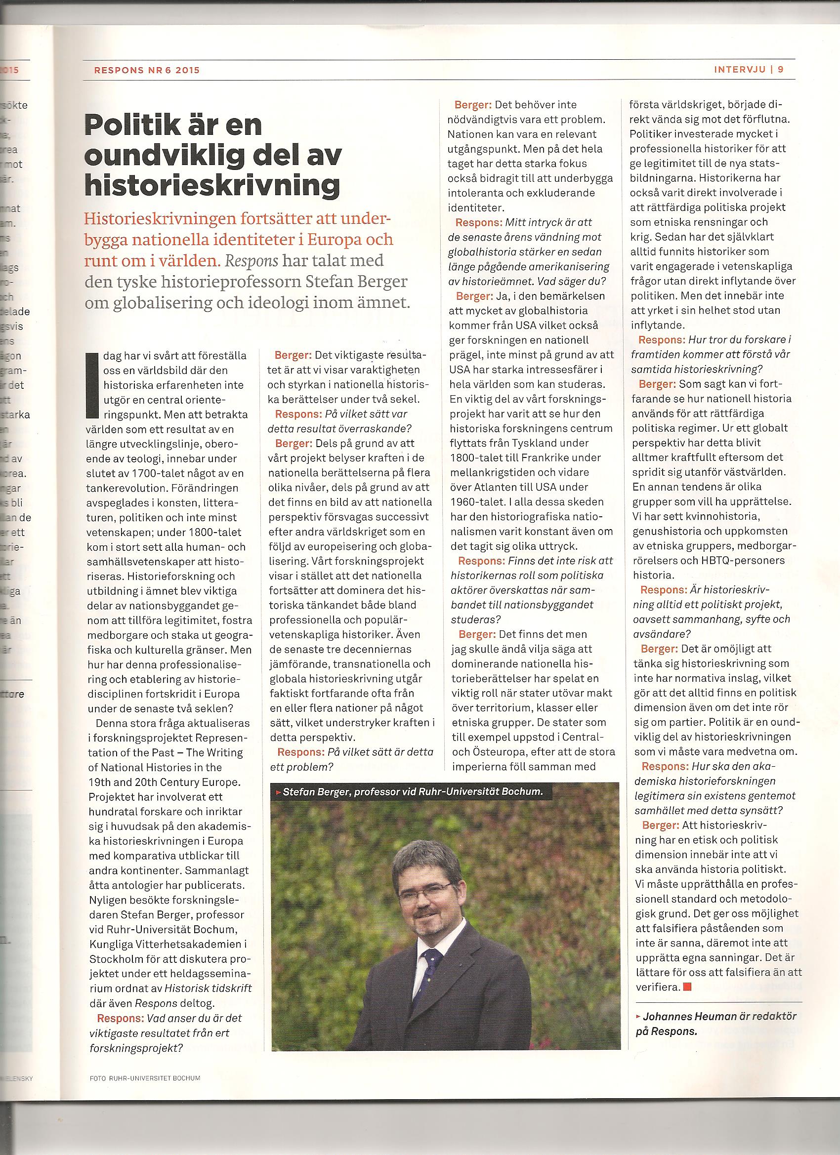 Intervju i tidskriften Respons med Stefan Berger