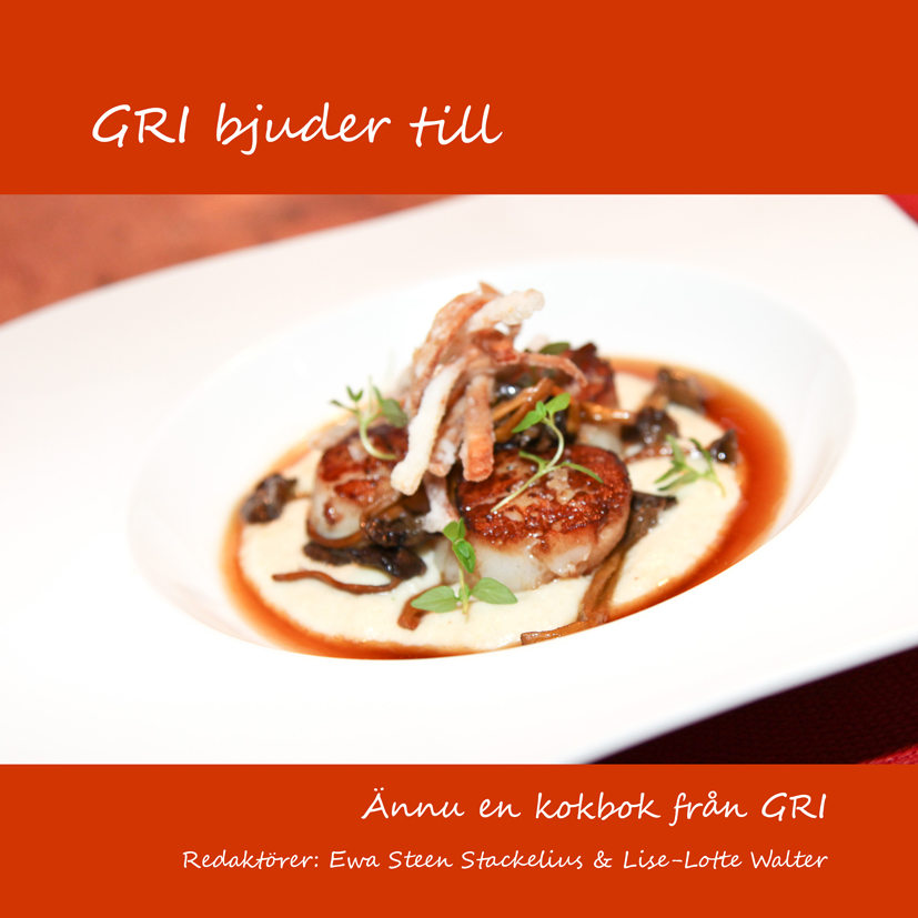 Nu har den nya kokboken kommit! För andra året i rad har medarbetare vid GRI lagat mat och fotograferat, var och en för sig i sina kök, och bidragit med ännu fler beprövade favoriter. Temat för årets kokbok är bjudmat som inte tar alltför mycket tid i anspråk. Boken är uppdelad i förrätt, varmrätt, dessert samt färdiga menyer för den som hellre vill ha det.