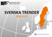 Svenska trender samlar SOM-institutets långatidsserier inom en rad olika områden. Rapporten utgår från de nationella SOM-undersökningarna, vars 37:e upplaga nyligen presenterats. Årets version av Svenska trender innehåller uppdateringar av formatet och släpps även med en tabellbilaga som låter läsaren se de exakta värdet för alla rapportens mätpunkter.