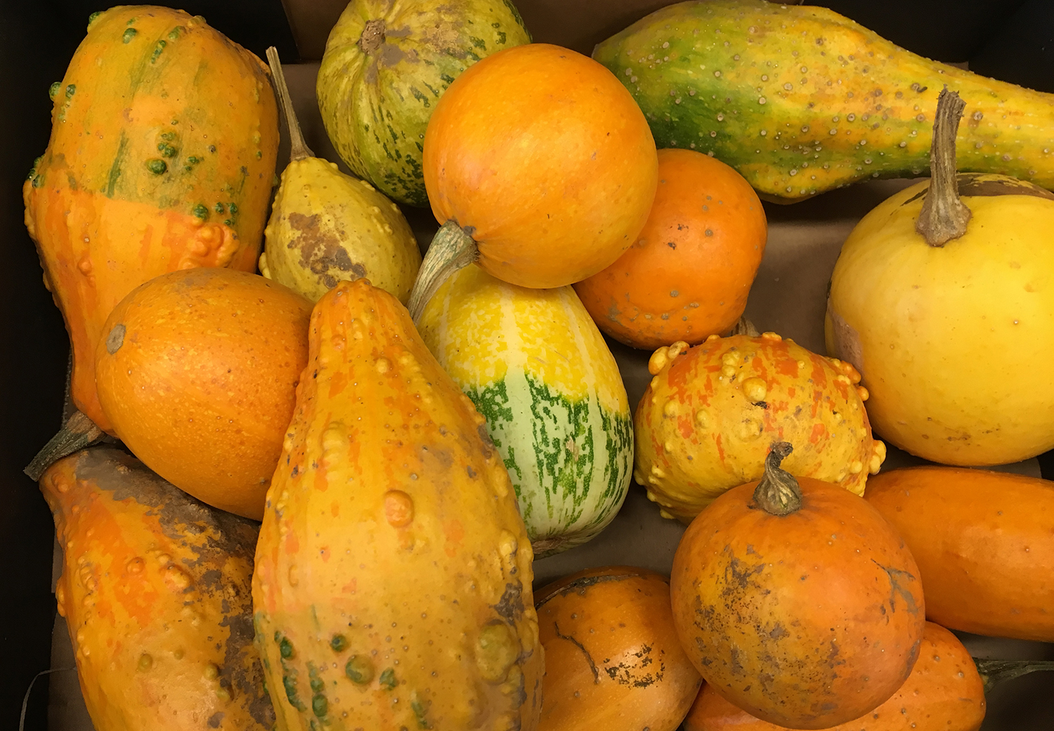 – Det finns många olika former hos odlade pumpor: de kan vara klotrunda, men också klubbformade, gurklika, tefatsformade, klotrunda och vara av mycket varierande storlek, från något hekto upp till den pumpa som 2016 vägde över ett ton! För att producera en sådan går det åt mycket gödning och omvårdnad. Naturligtvis finns det tävlingar för odlare.