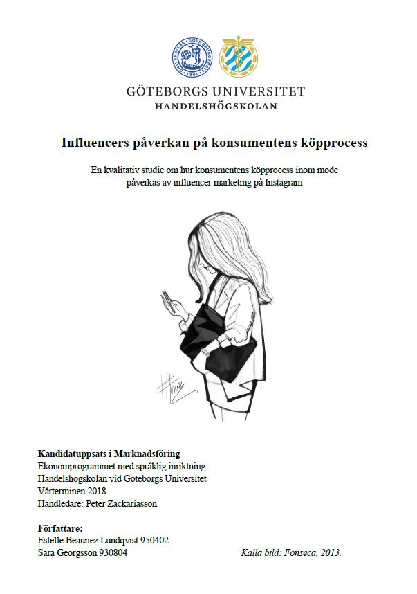 Influencers påverkan på konsumentens köpprocess av Estelle Beaunez Lundqvist och Sara Georgsson.