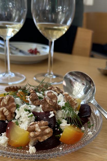 - Betor, chèvre, lök, valnötter