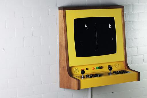 Vid ett skrivbord med kretskort, kablar och lödkolvar hänger spelkonsolen OriginX. Det var med den allt började. Träpaneler i runda former ramar in en senapsgul front med svarta blanka knappar. Den retro-futuristiska formen är Loves hyllning till arkadhallen och ett försök att sätta spelkultur på finhyllan.