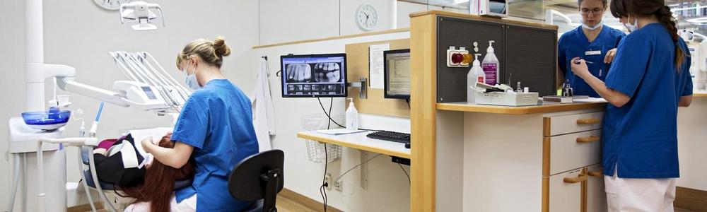 Utbildningen innehåller praktik på flera olika sätt. Under det första året gör du en kortare praktikperiod där du tar del av verksamheten på en tandvårdsklinik för att kunna sätta in utbildningen i sitt sammanhang. Under senare terminer får du fördjupa och tillämpa dina teoretiska och praktiska kunskaper i den kliniska undervisningen på undervisningsklinikerna, där du arbetar med patienter under handledning av erfarna lärare. Den sista terminen gör du en längre praktikperiod på en allmäntandvårdsklinik i Västra Götalandsregionen, där du självständigt undersöker och behandlar patienter.